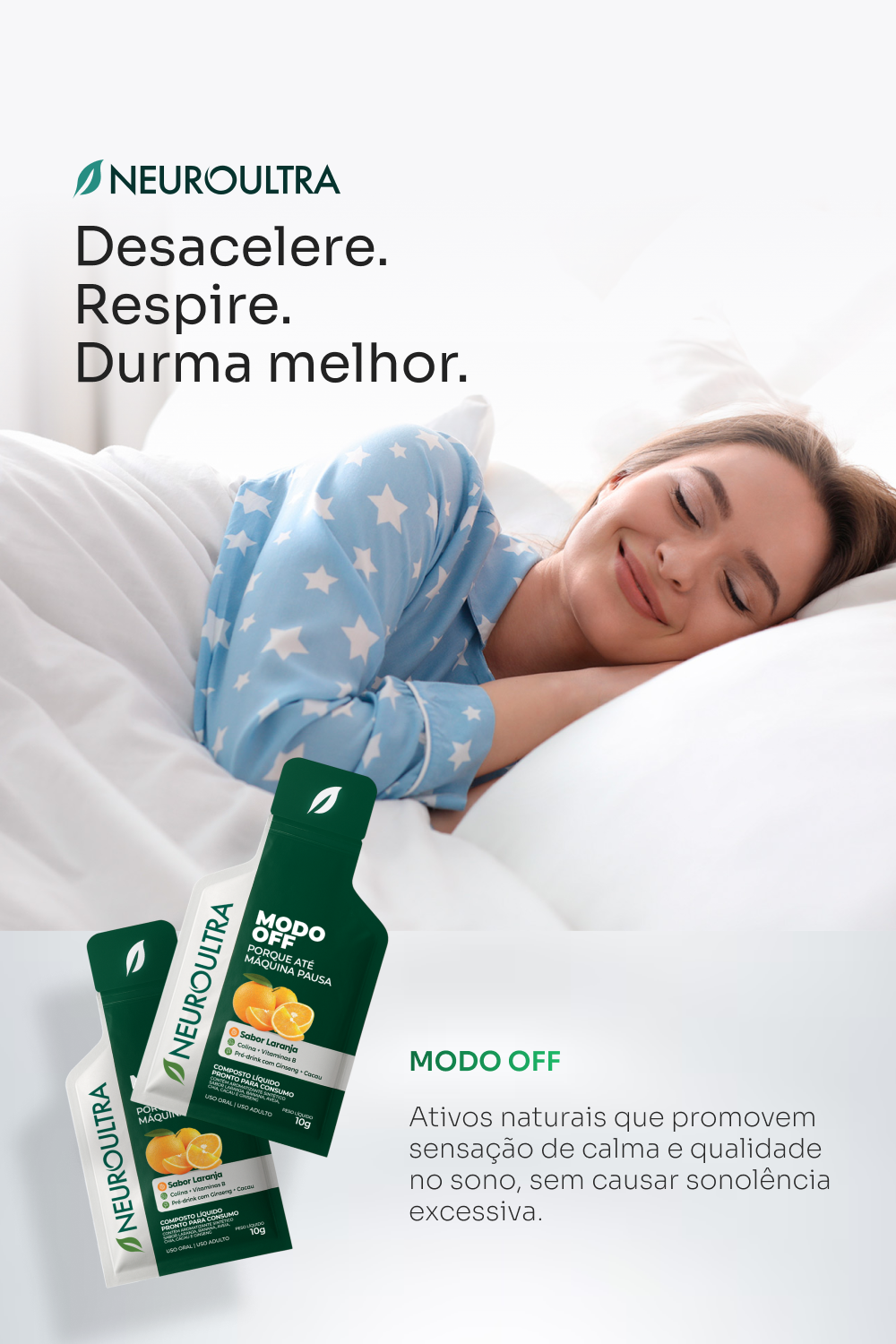 O Modo OFF Neuroultra é o pós-drink natural que ajuda corpo e mente a desacelerarem após um dia intenso.